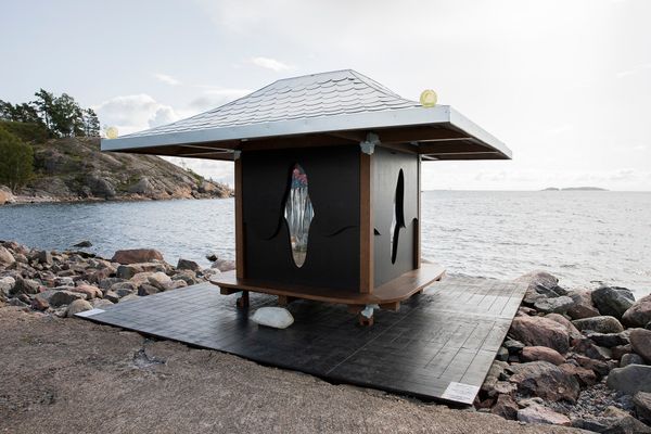 Inspired by a visit to a magical spirit house in Thailand, the portal provides three different encounters: a sound work, a house made for angels and spirits on the Isthmus connecting Vallisaari and Kuninkaansaari islands, as well as an online interactive experience. One version was also available in the gallery space at Cultural Centre Stoa.